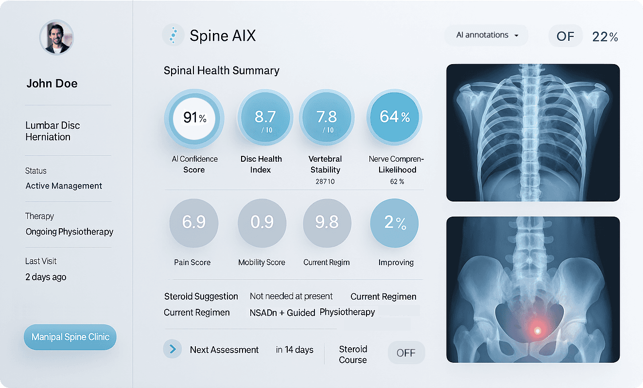 SpineAIX isn’t just a point solution. It’s a modular, AI-powered platform designed to grow with your hospital’s spine care journey—starting with lumbar disc prolapse and expanding to conditions like scoliosis, spinal stenosis, and post-operative risk monitoring.